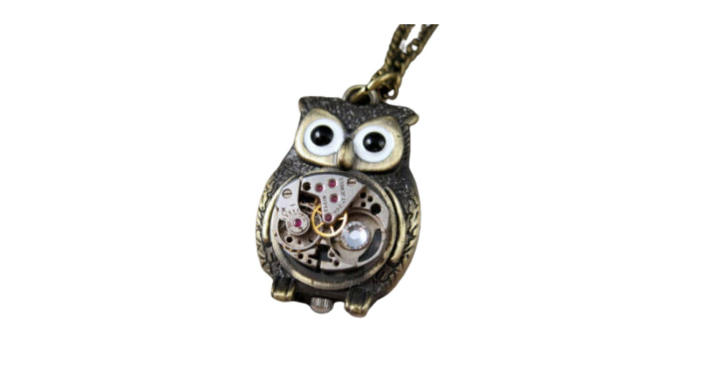 Handmade Antique Bronze Steampunk Owl Necklace