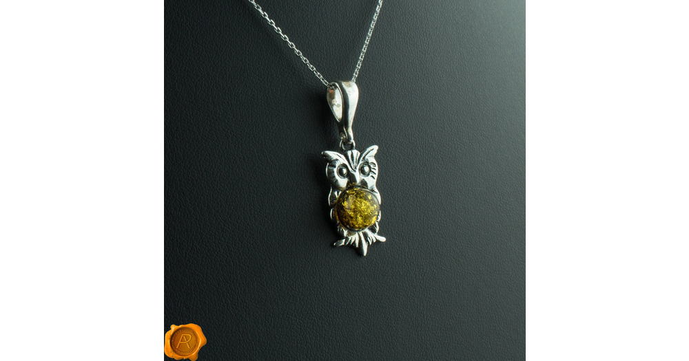 Green Baltic Amber Owl Pendant, Sterling Silver Necklace, Owl Gifts Jewellery Charm