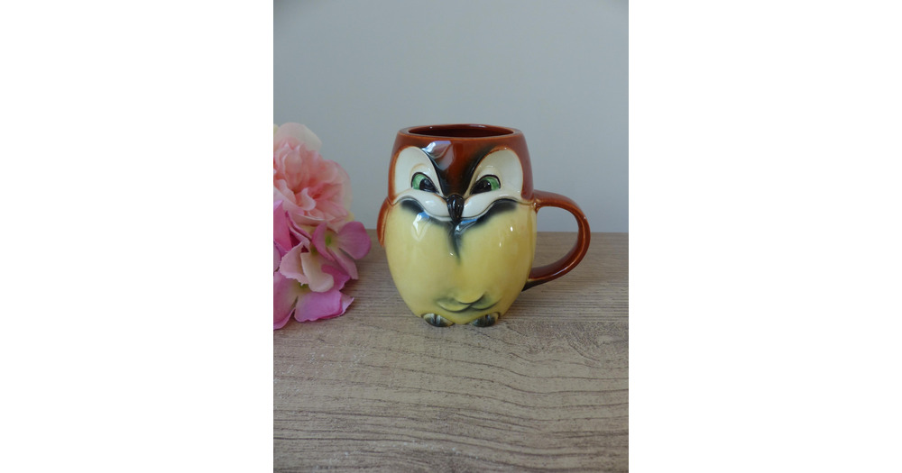 Ancien Mug Hibou Marron et Jaune en Céramique Goebel – Allemagne de l’Ouest | Tas