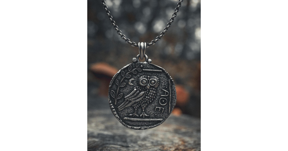 Athena Owl Pendant 925 Sterling Silver | Ancient Greek Coin Medallion | Handcrafted Wisdom Symbol Ne