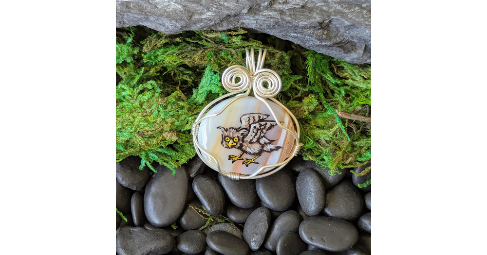 Hand Painted Pendant with Medieval Owl