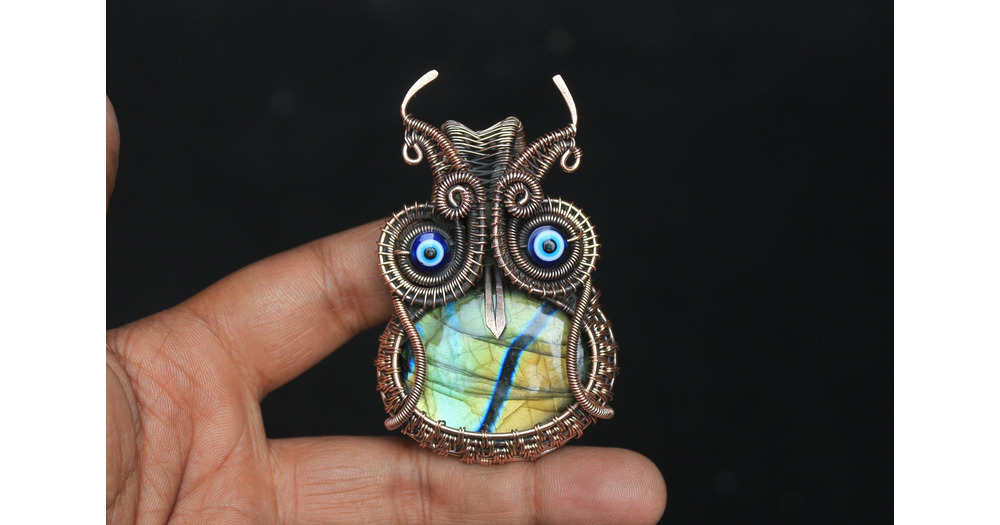 Handmade Copper Wire Wrap Owl Pendant: Labradorite Jewelry