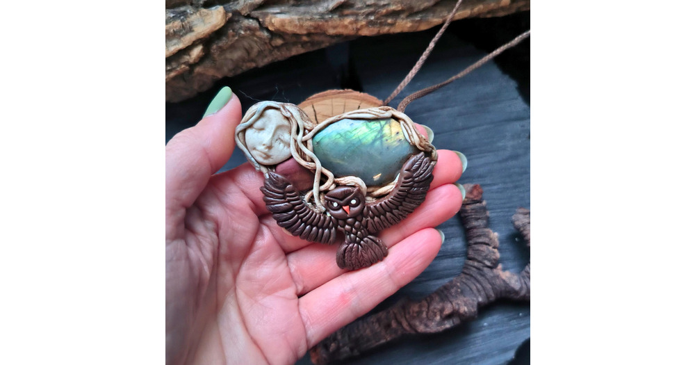 Goddess Pendant with Labradorite & Owl Charm - Mystical Jewelry