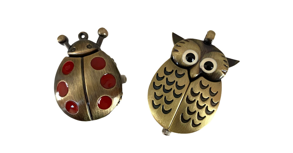 Antiqued Brass Owl Head Or Lady Bug Watch Face Pendant, Destash Jewelry Findings, Animal Pendants