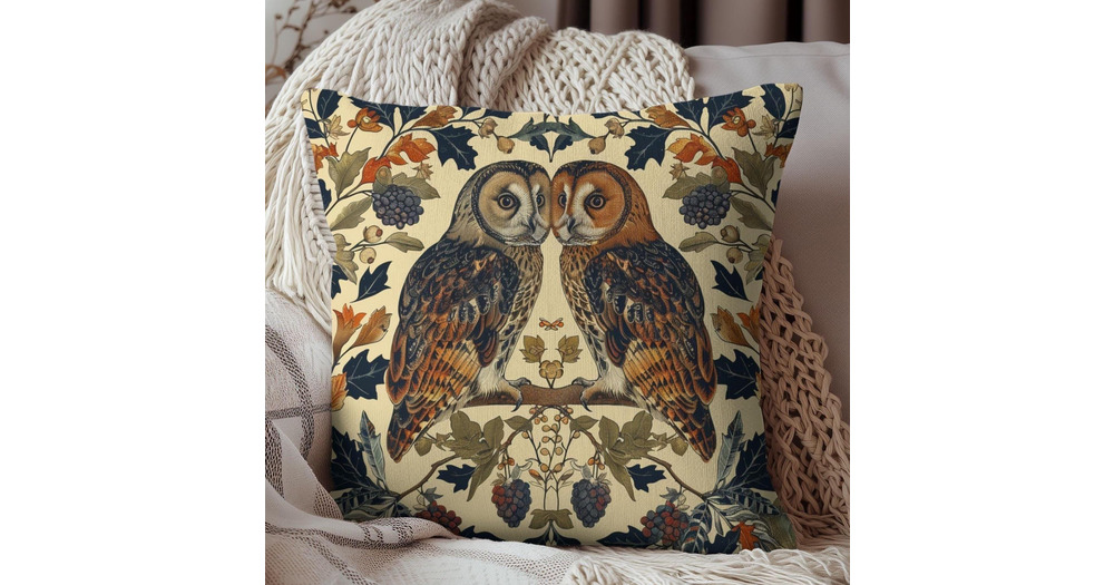 Art Deco Couple Owl Decorative Pillow William Morris Inspired | Cottagecore Home Decor Pillow