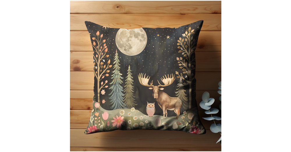 Wildlife Moose and Owl Decorative Accent Pillow Cushion Cover, Forestcore Cabin Decor Pillow Cases 1