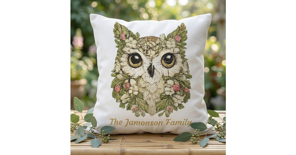 Botanical Owl Outdoor Pillow Reversible Woodland Owl Cushion Cottage Garden Patio Pillow Rustic Natu