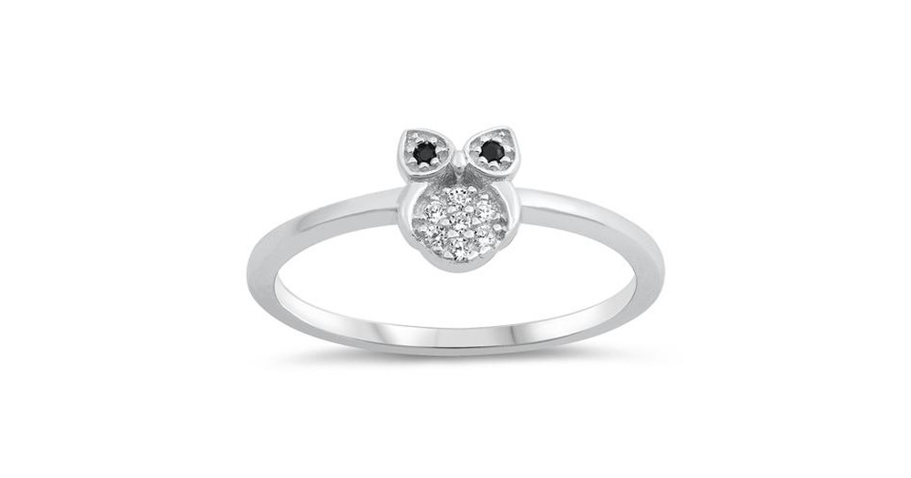 OWL Ring, Black & White Round Moissanite Diamond Ring, Mini Owl Bird Inspired Ring, Delicate Rin