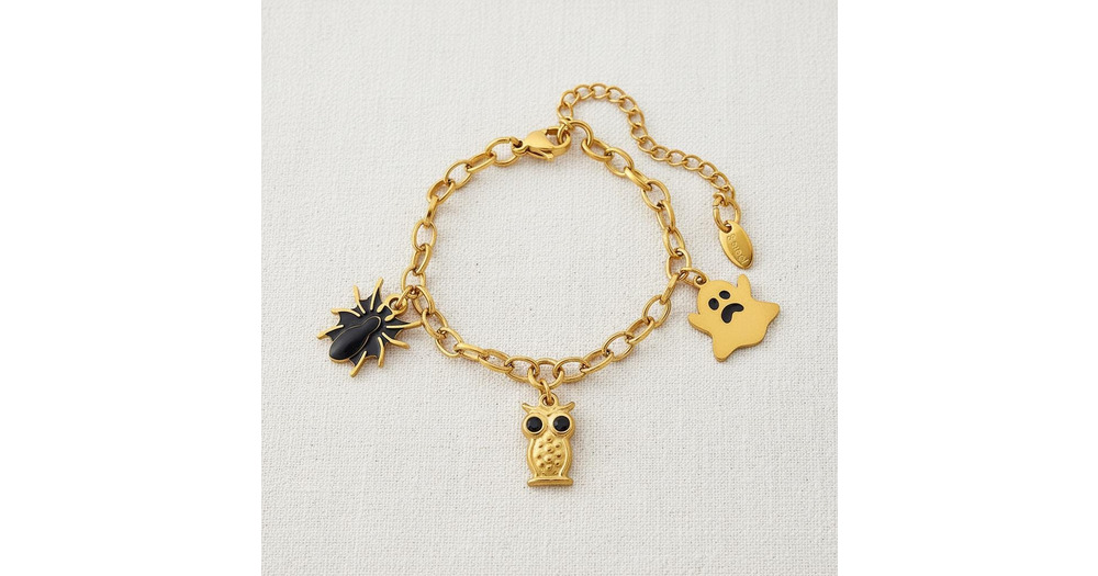 Halloween Spider Ghost Owl Bracelet, a whimsical and adorable gold jewelry piece, perfect for autumn