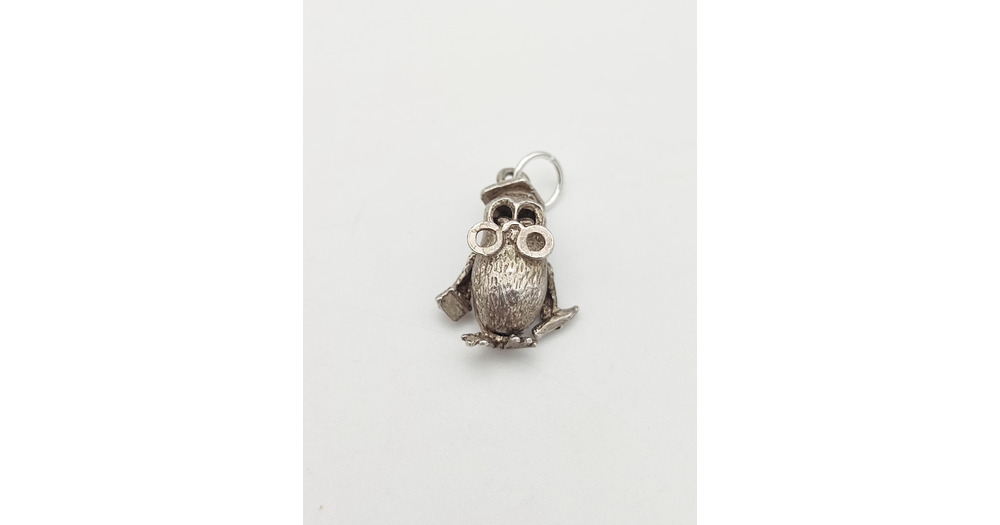 Vintage 925 Sterling Silver Owl Charm Wise Bird Pendant Academic Graduation Gift Bracelet Necklace J