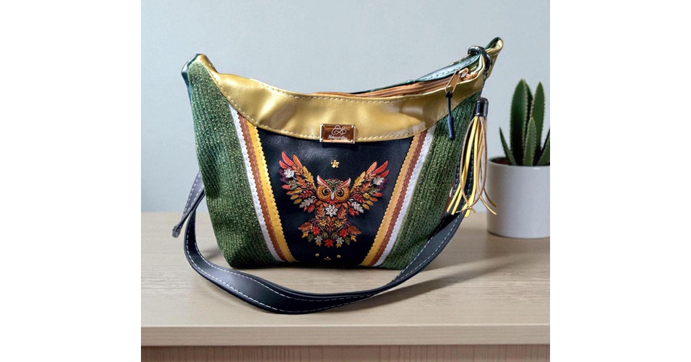Fall Leaves Owl Purse, One of a kind Embroidered Gift, Upcycled Handbag