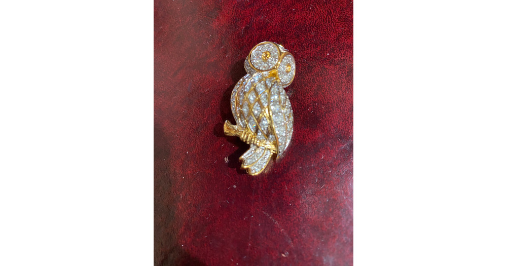 D'Orlan Signed Small Swarovski crystal Owl. 22kt gold plated w handset Swarovski crystals