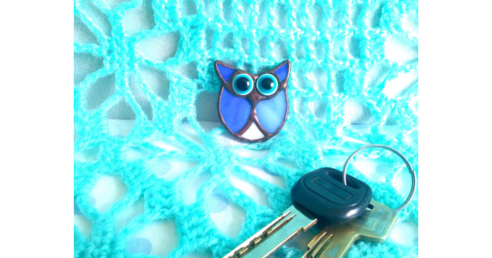 Funny owl brooch. Funny brooch for bags. Stained glass owl, cute glass bird. Funny cat brooch. Cute