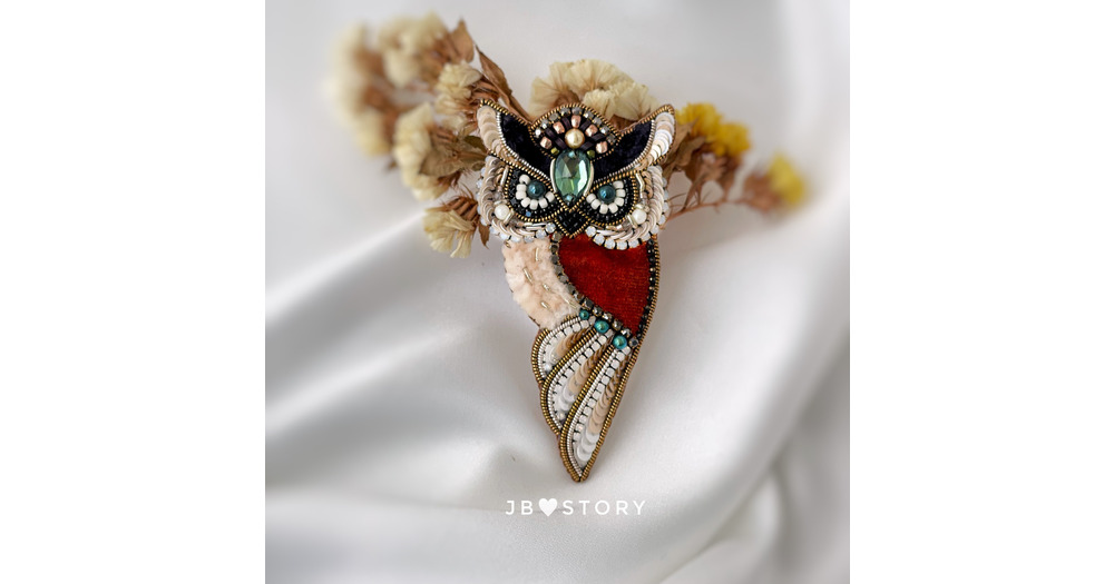 Beaded Owl Brooch: Wisdom Amulet, Festive Bird Jewelry