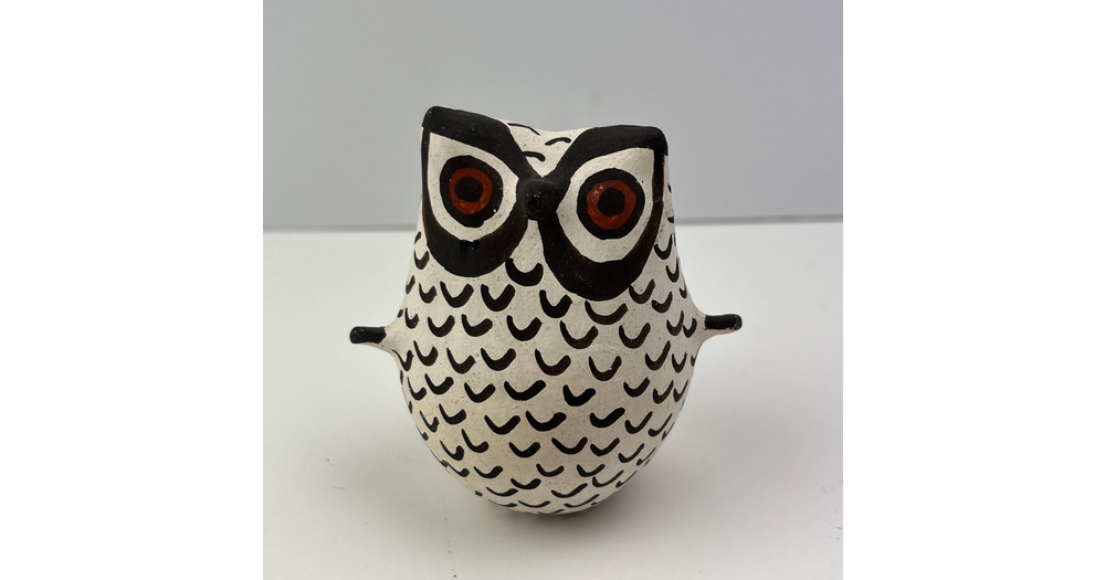 Acoma Pueblo Pottery Owl – Signed RLS Native American Hand Painted Owl
