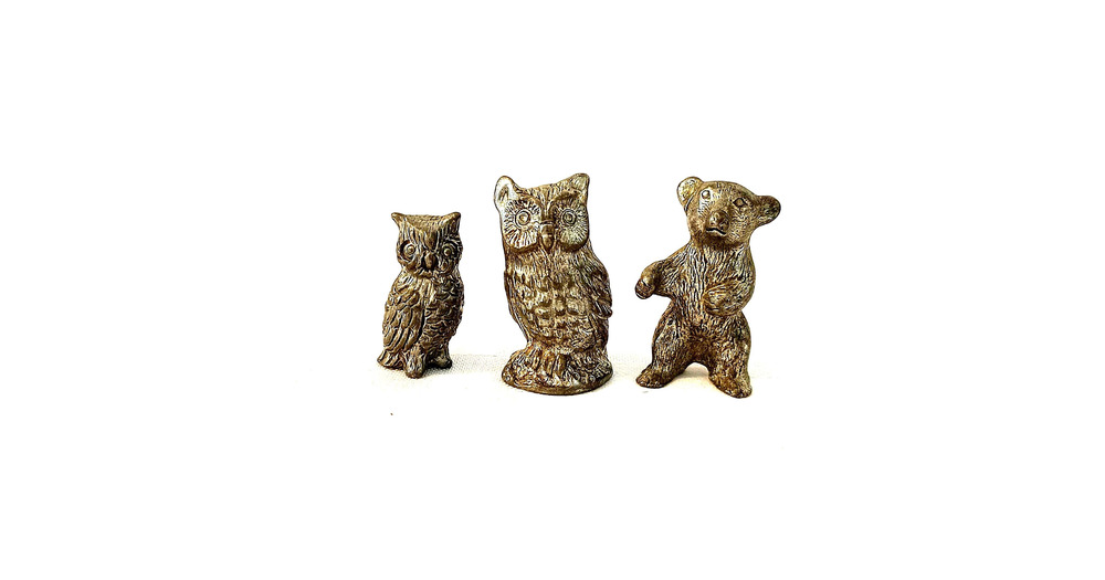 Miniature Tin figurines of Owl, Bear
