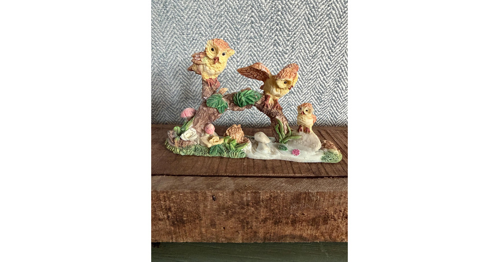 Vintage Owls Woodland Figurine, resin, 4.75”l x 2.75”t x 1.5”d