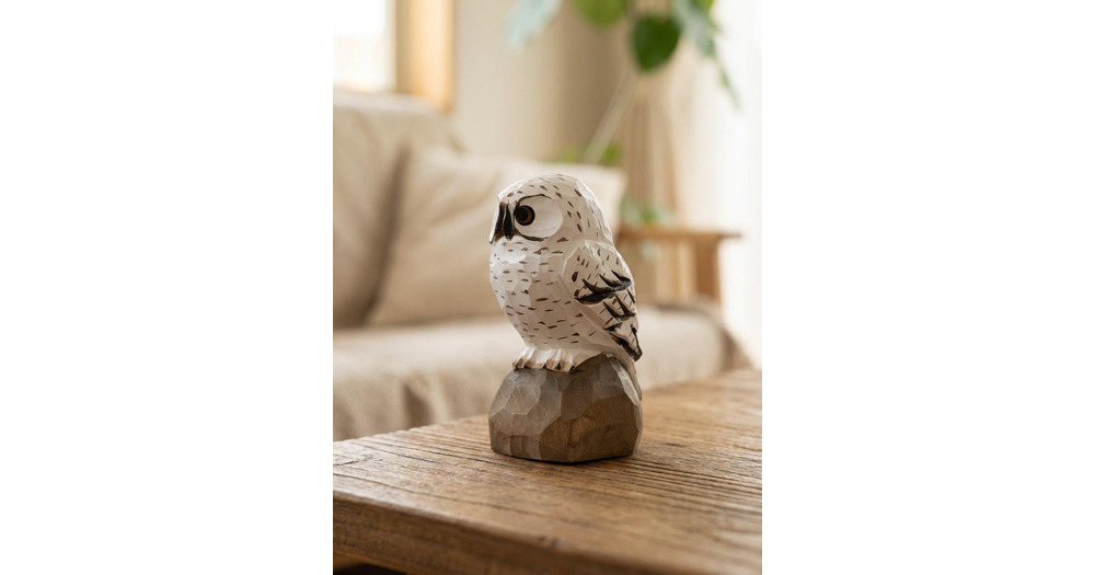 Hand Carved Wooden Snowy Owl Figurine – Rustic Woodland Animal Sculpture