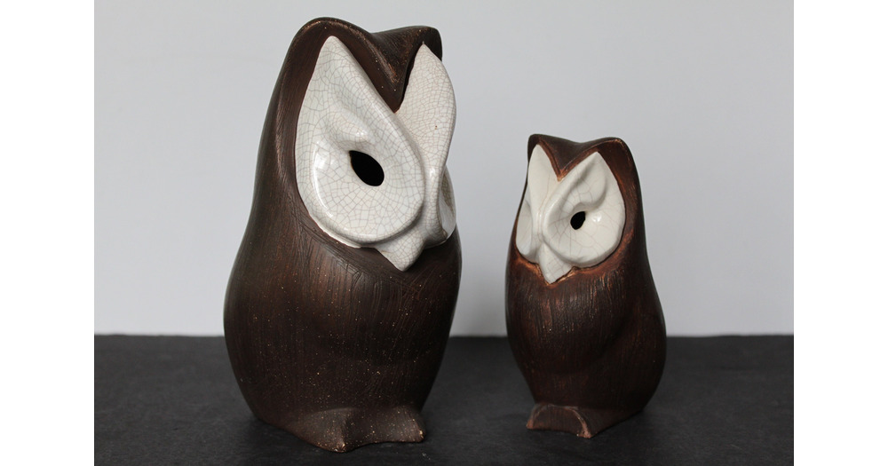 Vintage Brown Owl Figurines. Brayton Ceramic, White Faces, Unique Cottagecore Mantel Decor, Grandmac