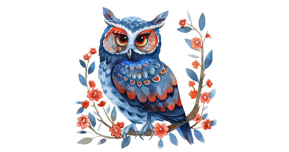 19 Folk Art Owl Clipart, Owl Clip art, Printable Watercolor Clipart, Paper Craft, Junk Journals, Hig