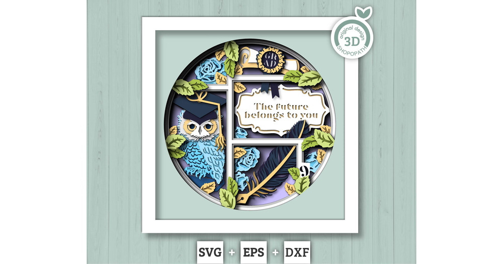 Graduation Owl 2026 with Label - 3D Shadow Box Layered SVG DXF EPS (Cutting Files)