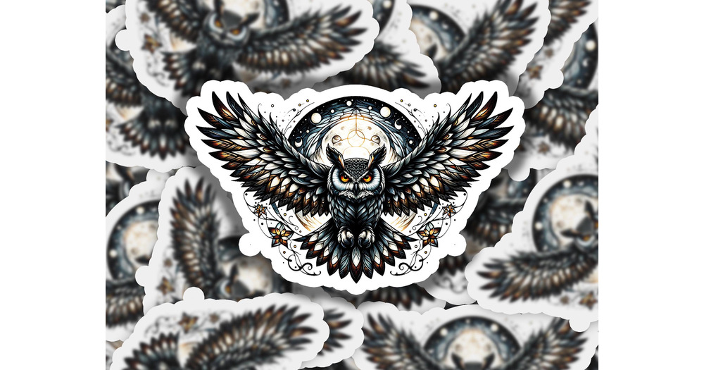 Owl at Night Moon Vinyl Sticker | Waterproof & Durable | Watercolor Sticker | Custom Sizes | Fas