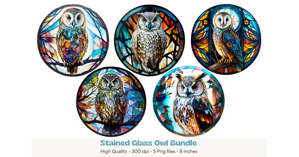 Stained Glass Png, Owl Wind Spinner Bundle, Owl Sublimation, Round Sign Sublimation, Owl Images Subl