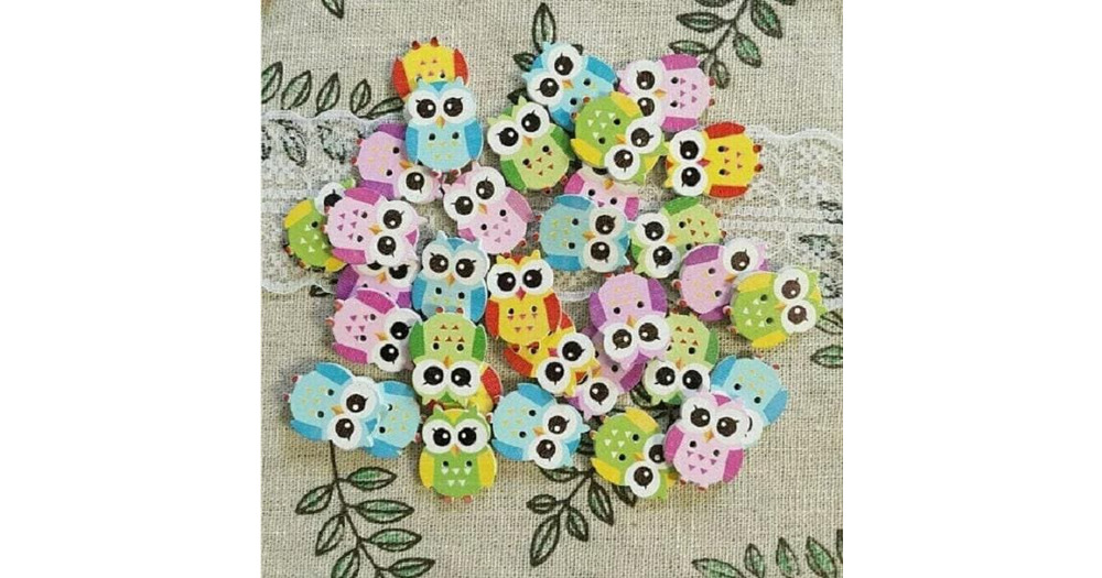 Pack of 10 OWL 2-hole 1" x 3/4" (25mm) White Wood Buttons Scrapbook Craft (1078)