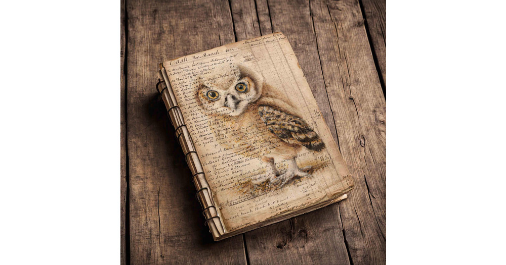 Baby Owl Ledger Pages: Grunge Scrapbook Paper (Digital Download)