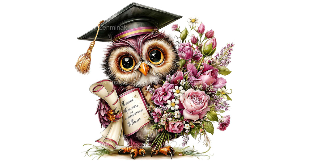 10 PNG Graduation Owl Clipart, Diploma Bouquet Floral Graduate School Celebration