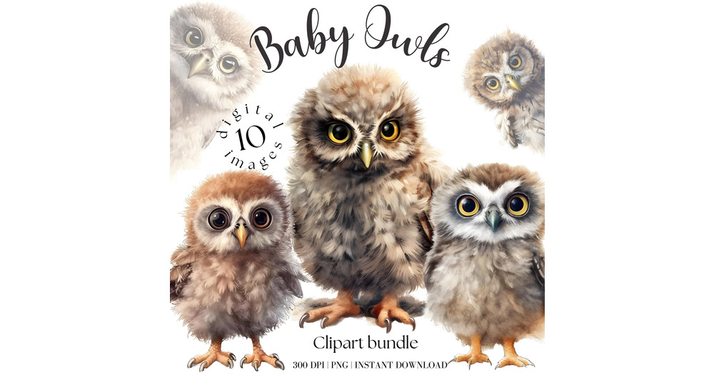 Baby Owl Clipart, Watercolor Winter Birds PNG (Digital Download)