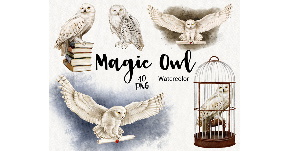 Watercolor Owl Clipart, Magic School, Wizard Clip Art, Hedwig owl, Halloween Clipart, bird clip art,