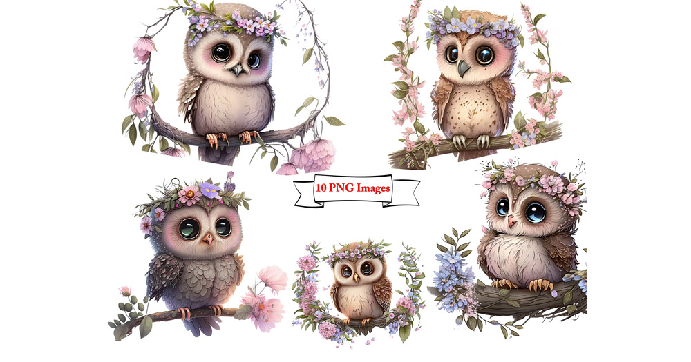 Watercolor Celestial Cute Owls Clipart Bundle - fantasy owl clip art in PNG format in Tranparant Bac