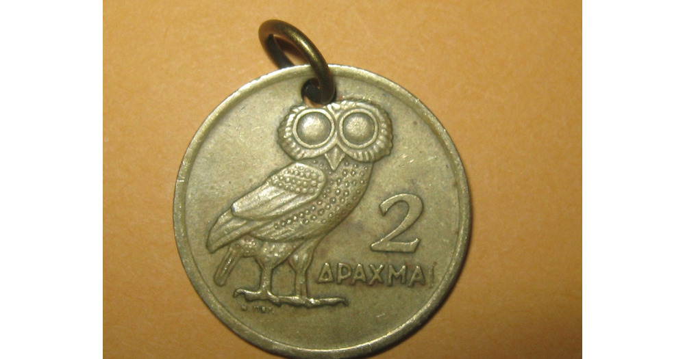 Authentic Vintage  Greece Athena Owl  Phoenix Coin Pendant Necklace