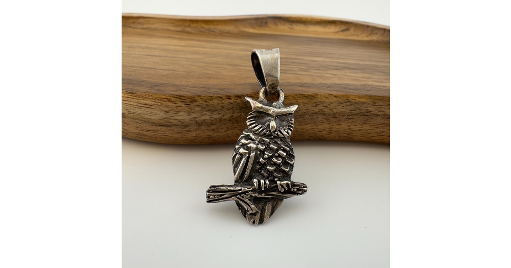 Vintage Sterling Silver Owl Pendant 925 Mexico Owl Necklace (no chain)