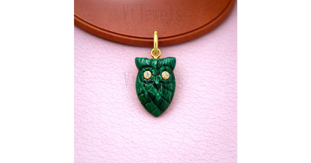 Malachite Owl Pendant Necklace – 925 Sterling Silver
