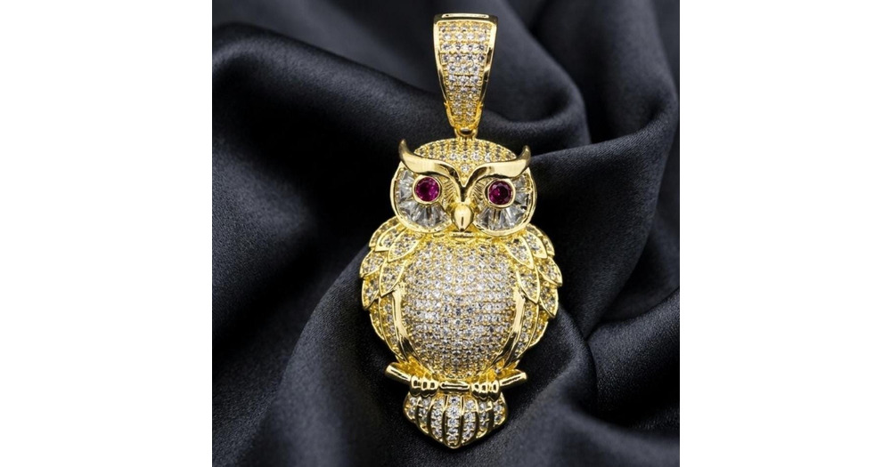 Owl Pendant Necklace 14k Gold Plated, Iced Owl Charm Moissanite, 925 Sterling Silver Animal Pendant,