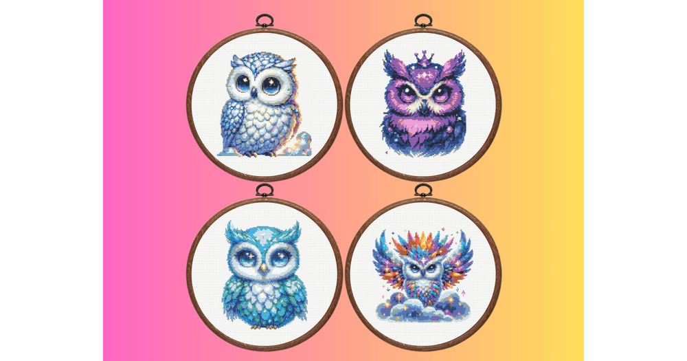 OwlCross Stitch Pattern, Set of 4 Owl Cross Cross Stitch Pattern, Instant Download