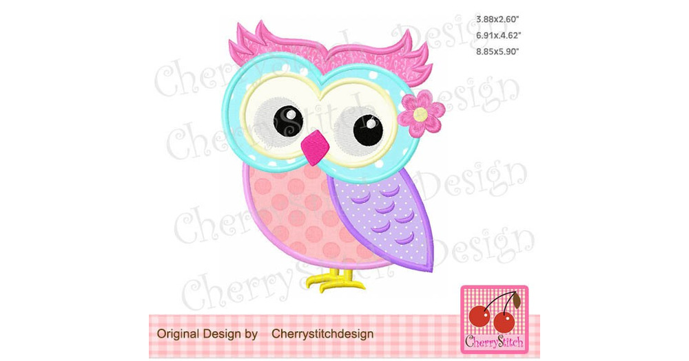 Owl applioque, Olw with flower Machine Embroidery Applique