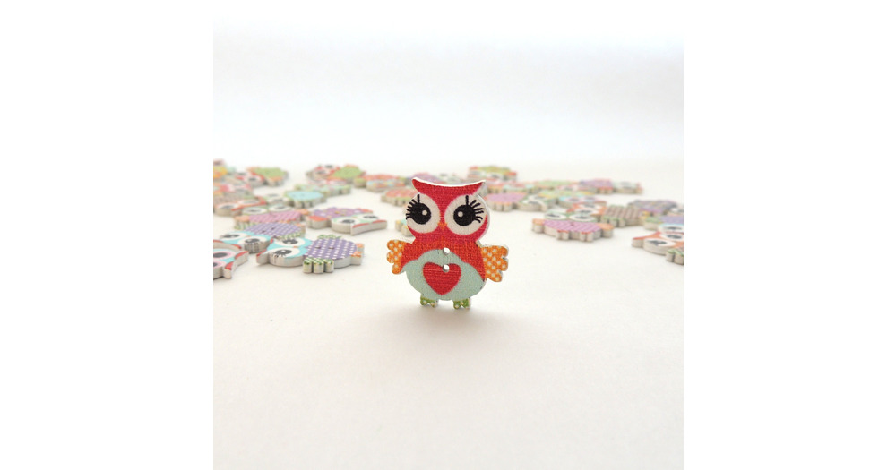 Wood Owl Buttons // Sewing scrapbooking kids crafts novelty button rainbow bright