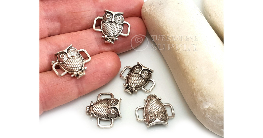 Silver Owl Connector Charms, Antique Silver Plated Owl Charms, Owl Bracelet Connector Findings, 5 pc