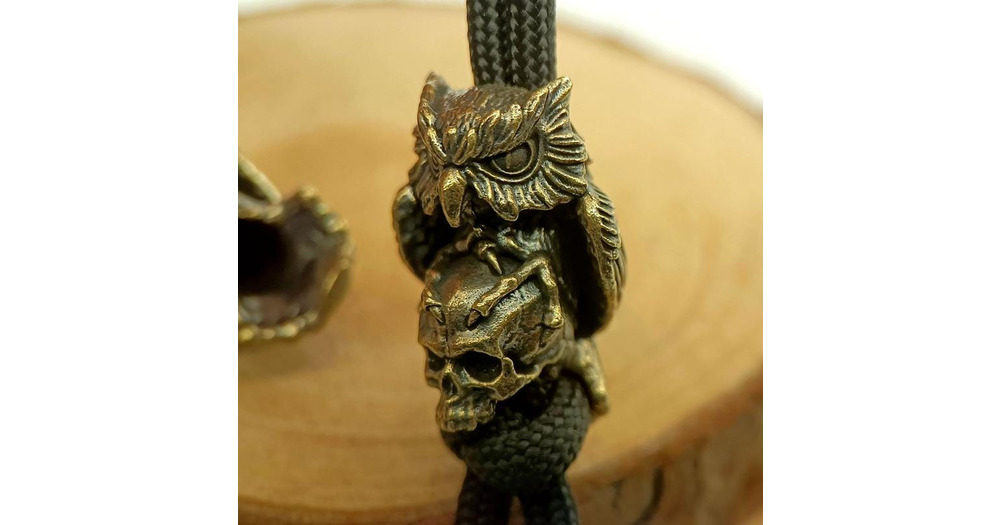 Vintage Brass Owl Skull Bead – Lanyard Accessory, EDC Paracord Bead