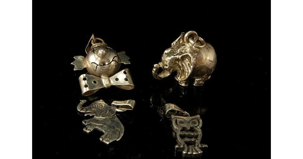 4 vintage collection of charm pendant elephants owl clown sterling silver