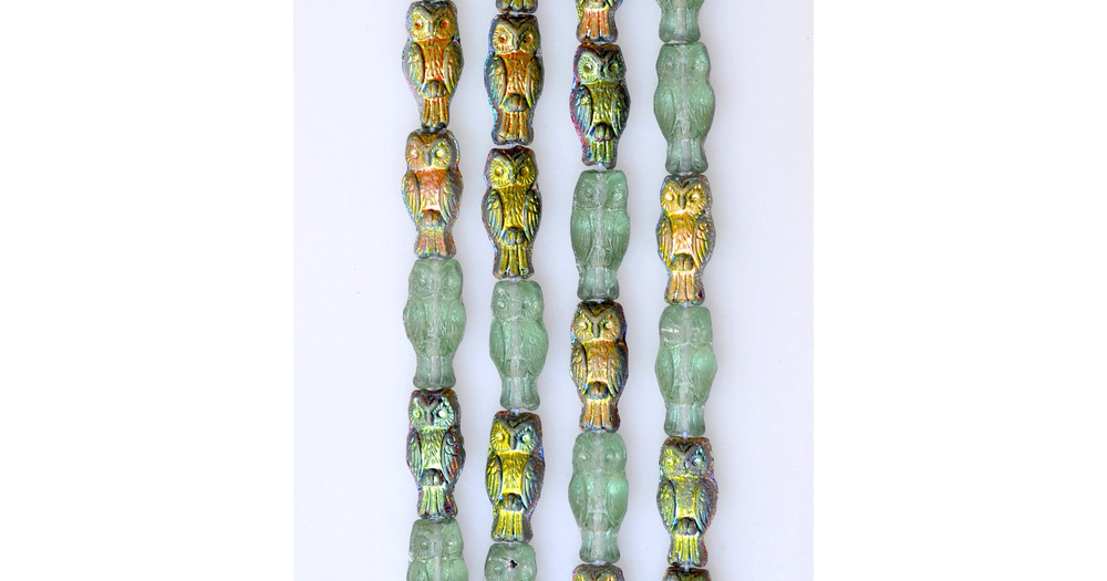 Small Owl Bead with Vertical Hole - Czech Glass Owl Beads - 15mm x 7mm - Peridot or White Vitrail -