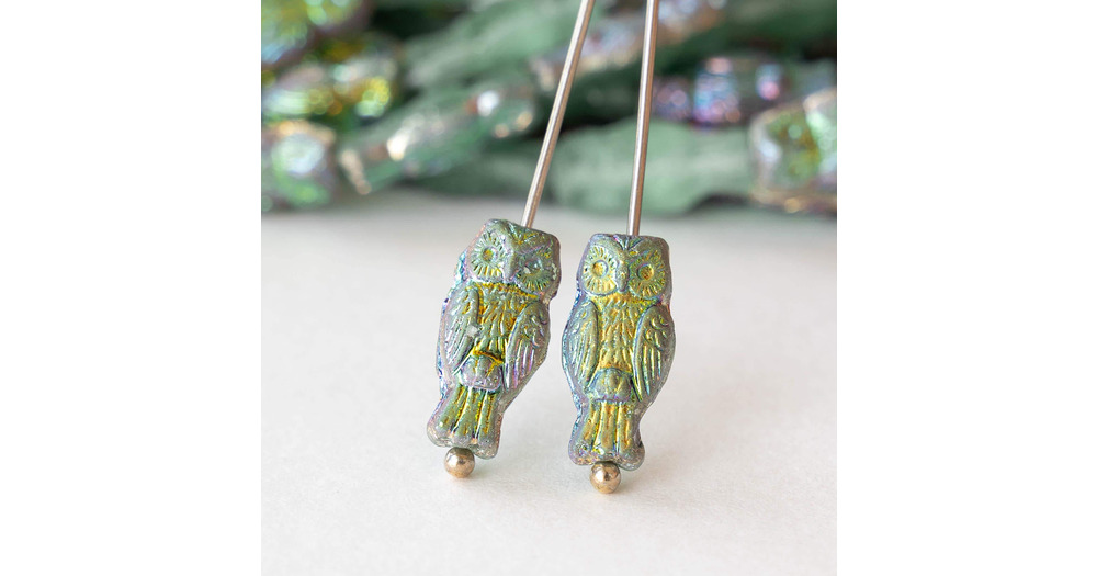 Czech Owl Beads - Czech Glass Beads - Horned Owl Beads - 15x7mm - 10 beads