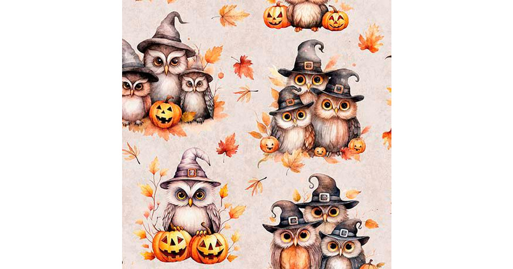 QT Cuties Halloween Owls on Oatmeal 100% Cotton Price per Yard
