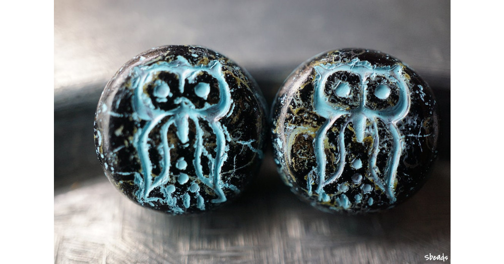 FREE SHIPPING Midnight Owl, Owl Beads, Czech Beads, Beads, 49-4sa