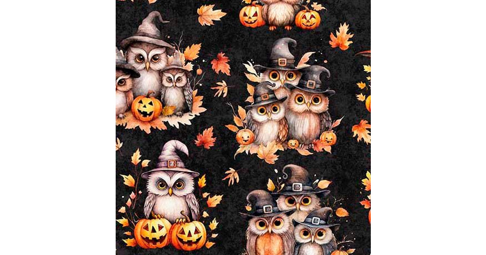 QT Cuties Halloween Owls on Charcoal 100% Cotton Price per Yard