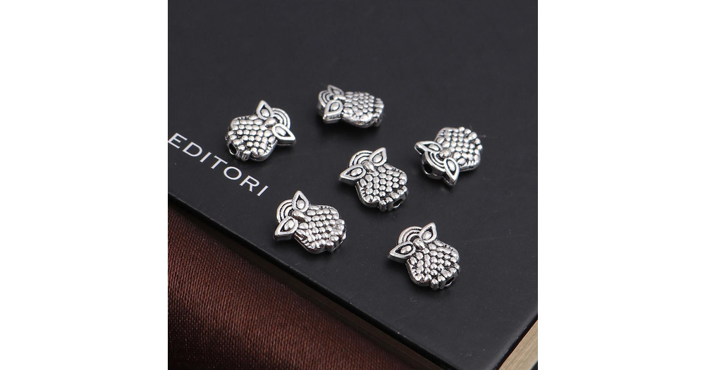 lot de 10 perles hiboux argent tibétain 10x9 mm argenté