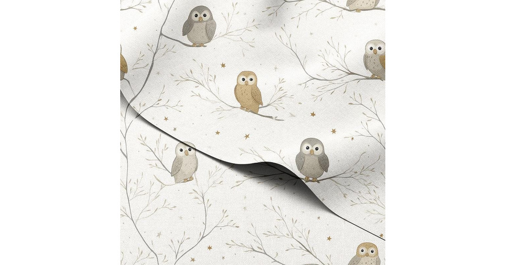 Waterproof Outdoor Fabric by the Yard – Owls on Branches Stars Neutral Woodland Print 59in Wid